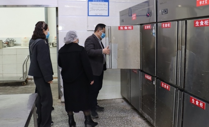 会后,周志明一行人深入食堂后厨实地查看了食材仓储间、烹饪操作间等重点区域,重点对食品原料采购验收、加工制作流程、餐饮具消毒保洁、从业人员健康管理、食品留样制度落实等关键环节进行了全面检查。